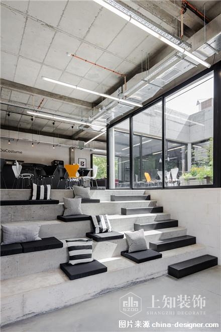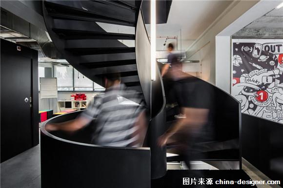 ▼螺旋樓梯連接了辦公區(qū)域和社交區(qū)域