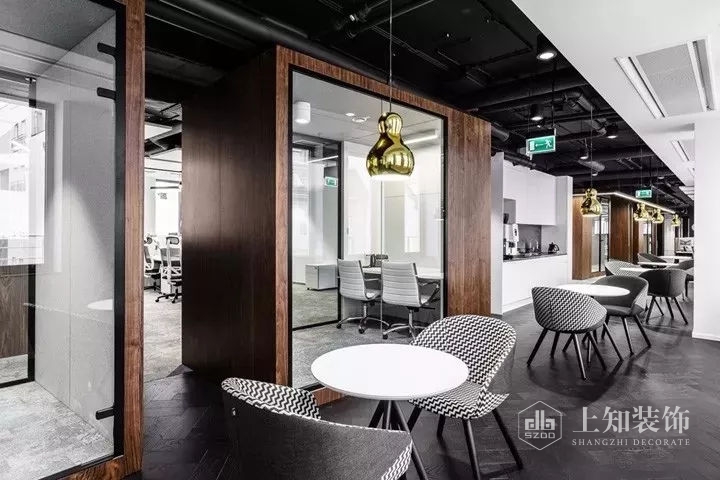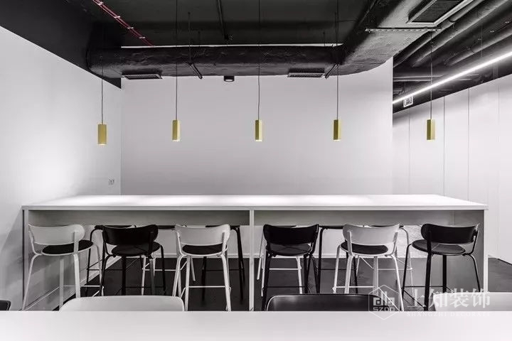 本案設計宗旨是為員工創建一個舒適友好的工作氛圍。設計以logo的黑白色轉化為空間的主色調,經典的黑白對比加入優雅的灰色和溫暖的胡桃木飾面,豐富空間視覺的同時營造優雅精致的空間氛圍。